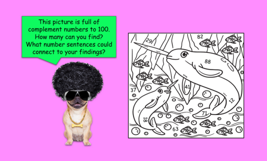 Students will use their number bond knowledge, and addition and subtraction knowledge, to explore number complements to 100. Number complements are numbers that go together to make 10, 100, 200, 1,000. Students will look for the complements that are hidden in pictures.