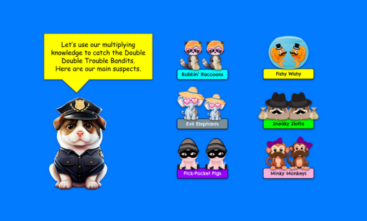 Students will explore strategies for multiplying by 4, such as using the ‘double, doubles’ method, where they double a number and then double it again. They will practice this technique whilst solving a mystery where they try to catch the ‘Double Double Trouble Bandits’.
