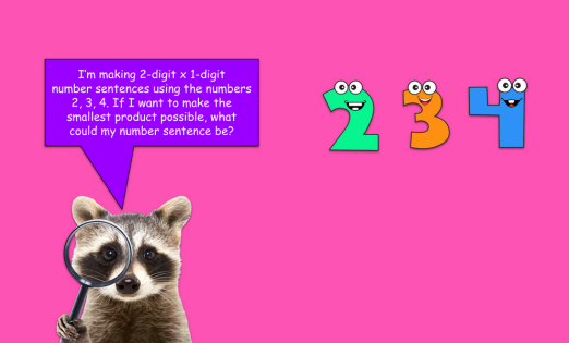 Students will continue to use place value dots/counters to multiply 2-digit numbers by 1-digit numbers. Students will create and solve 2-digit x 1-digit number sentences that match each challenge.