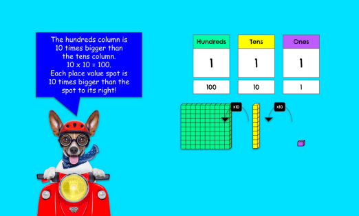 Students will revisit the connection between each place value column and use this information to begin to multiply by ten. They will do this by exploring what happens to digits when they become 10x larger. In this lesson, students will play Cross the River, which is a dice/card game.