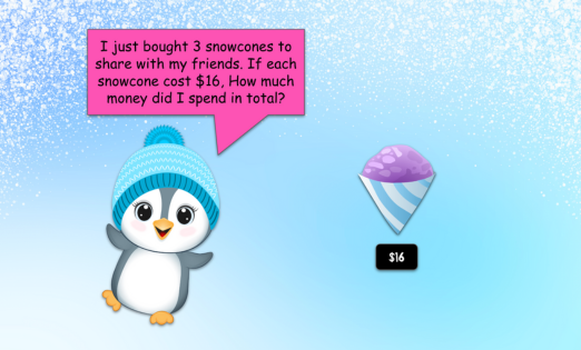 This lesson uses picture dots and place value columns to show the conceptual process of multiplying large amounts with regrouping. This will provide the foundation for partial product and short multiplication. Students will practice using picture dot multiplication to find out how much money the animals spent on their snow holidays.