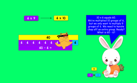 Students will apply their understanding of multiplying by 10 and the concept of equal groups to develop efficient strategies for multiplying by 9. Students will practice multiplying by 9 by playing a game called Carrot Connections.