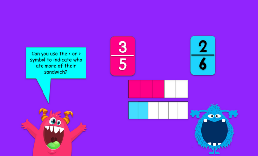 Students will compare fractions with like denominators and unlike denominators using visual fraction strips. They will use their knowledge to help find the results of the monster eating. competition.