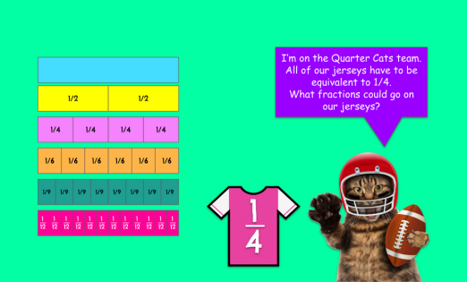 Students will use a fraction wall to identify equivalent fractions. They will apply their knowledge to create equivalent fraction team jerseys.