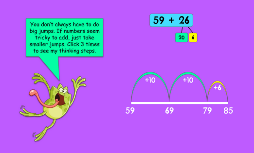 Jump strategy is a mental strategy used to manipulate and solve addition problems effectively. Students will break down a number into smaller chunks, then add each chunk to the larger number using a number line. This strategy helps provide a strong foundation for mental addition.