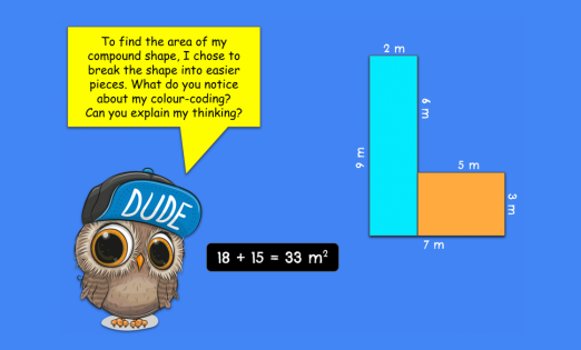 Students will use their knowledge of the formula for finding the area of rectangles to calculate the area of compound shapes.
