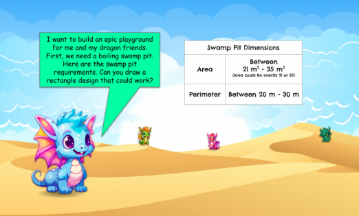 Students will combine their knowledge of perimeter and area to design a playground for the dragons.