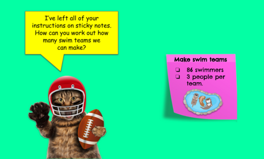 Students will use jump strategy to divide 2-digit and 3-digit numbers. Jump strategy involves using a number line to repeatedly add groups of the divisor to find out how many groups ‘fit inside’ the dividend. Students use this amount to find the quotient. They will use jump strategy to help organise a sports camp.