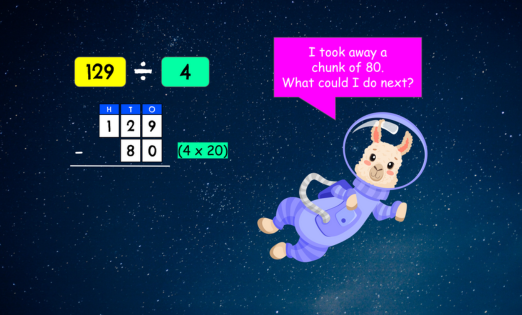 Students will use chunking strategy to solve division. Chunking strategy involves repeatedly subtracting the divisor from the dividend to find the quotient. They will use their knowledge to calculate how many items each spaceship crew member will receive.