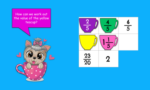 Students will add and subtract fractions to solve teacup fraction puzzles.