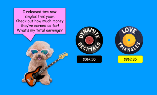 Students will gain a conceptual understanding of adding decimals up to hundredths using column method to help find the musicians’ earnings.