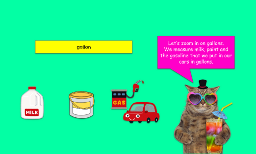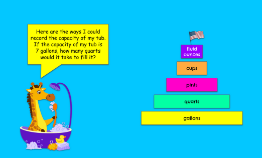 Students will convert between gallons, quarts, pints, cups and fluid ounces by playing the Scrub-A-Dub-Dub game.